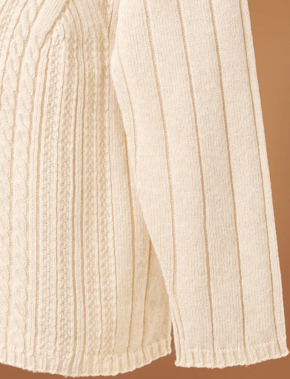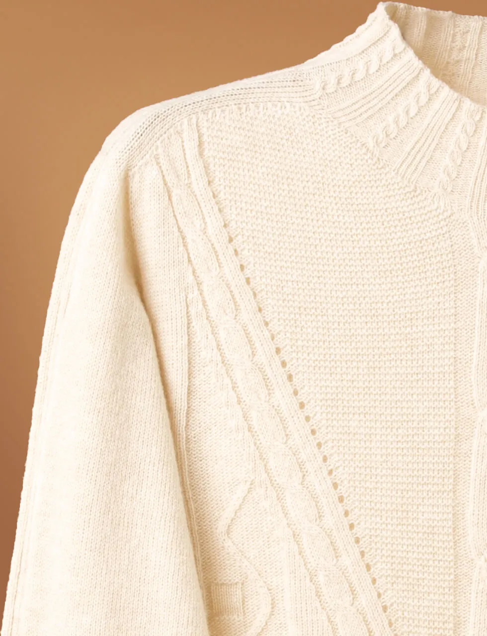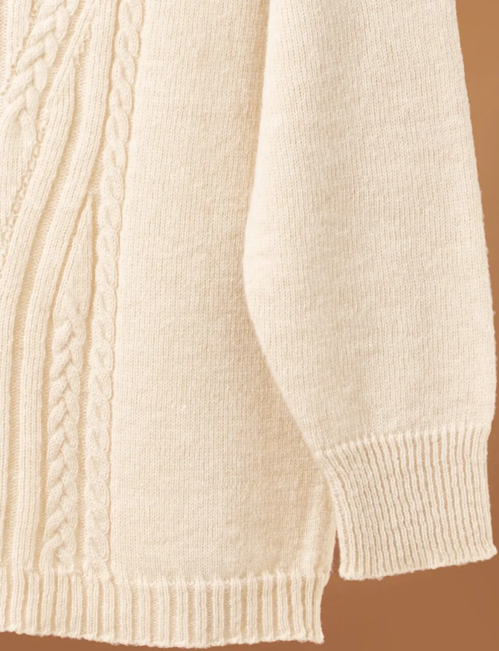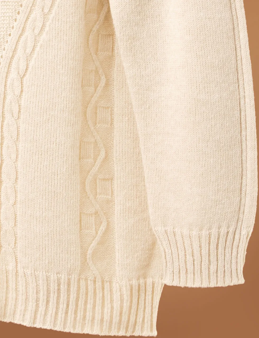 - 衿にボリューム感を持たせたケーブル柄のホールガーメントニット