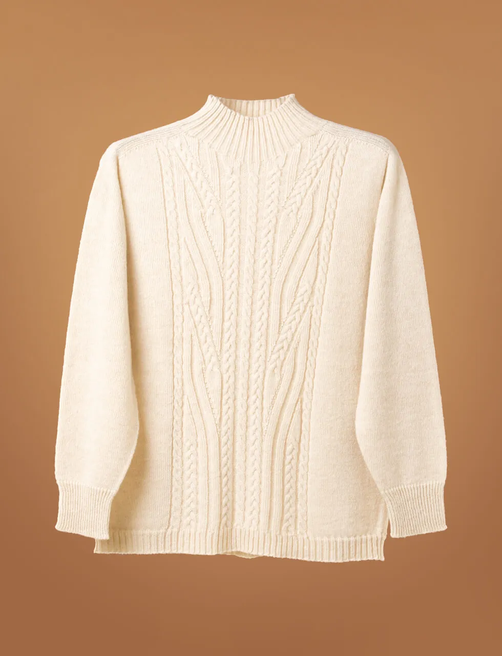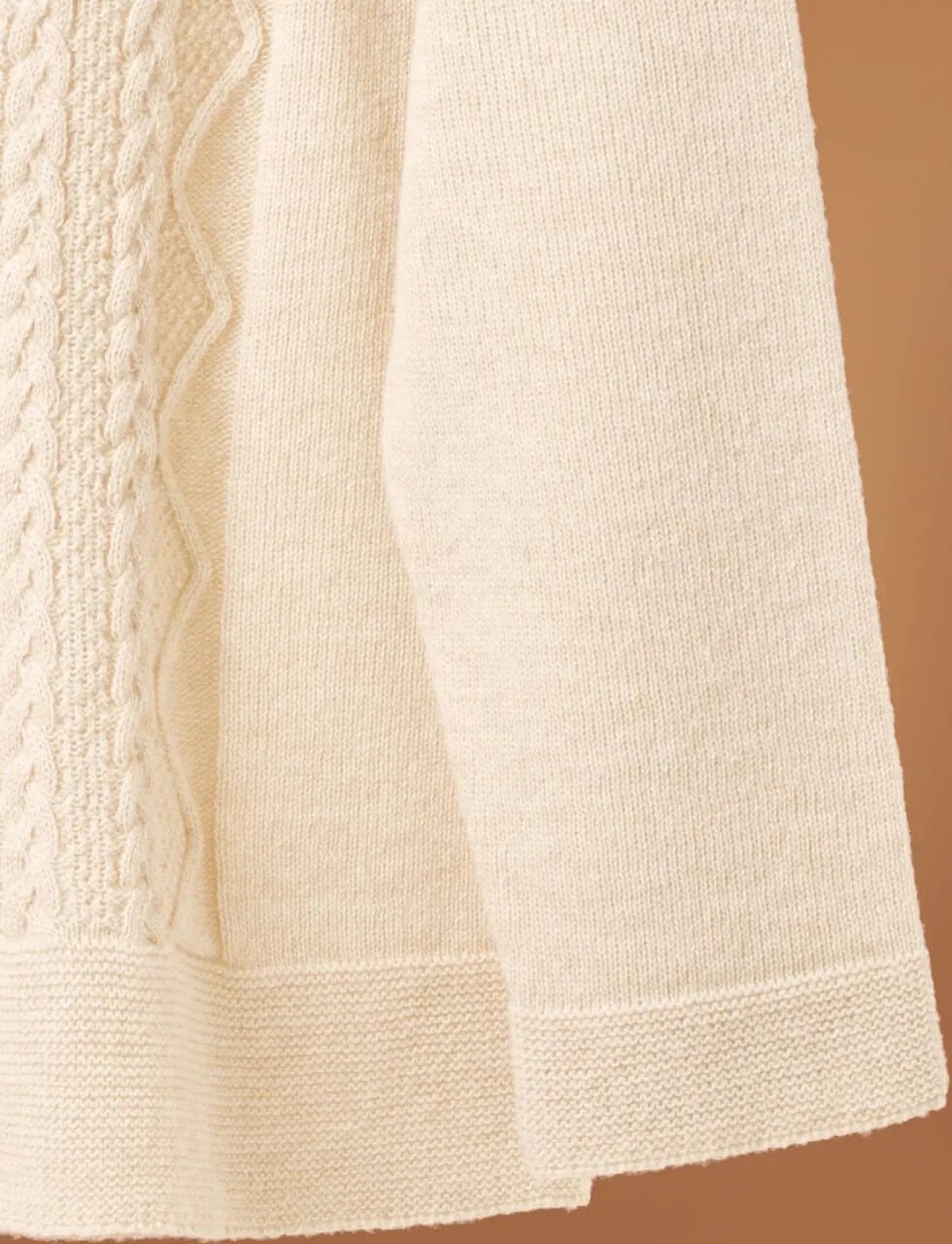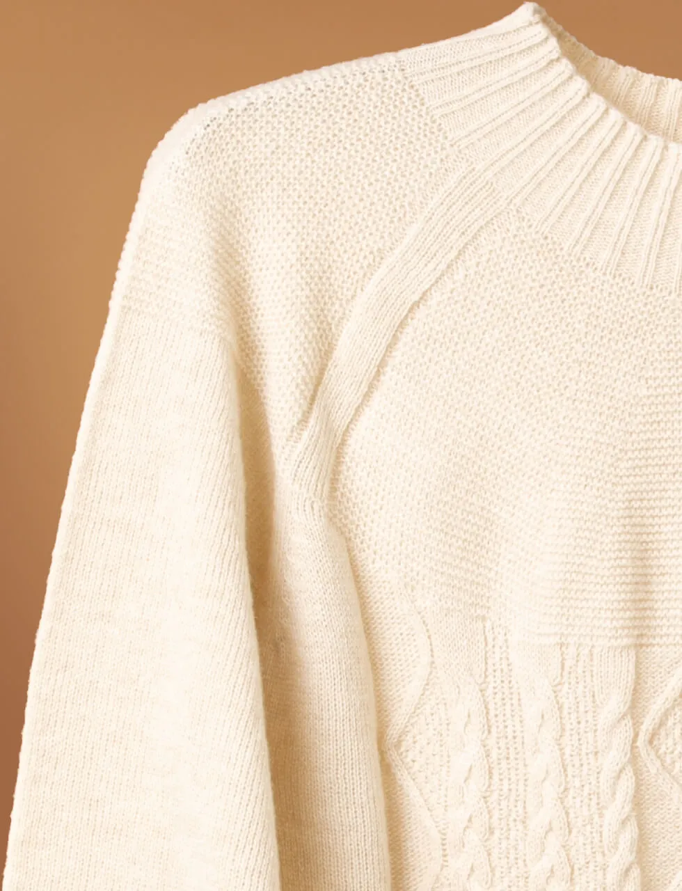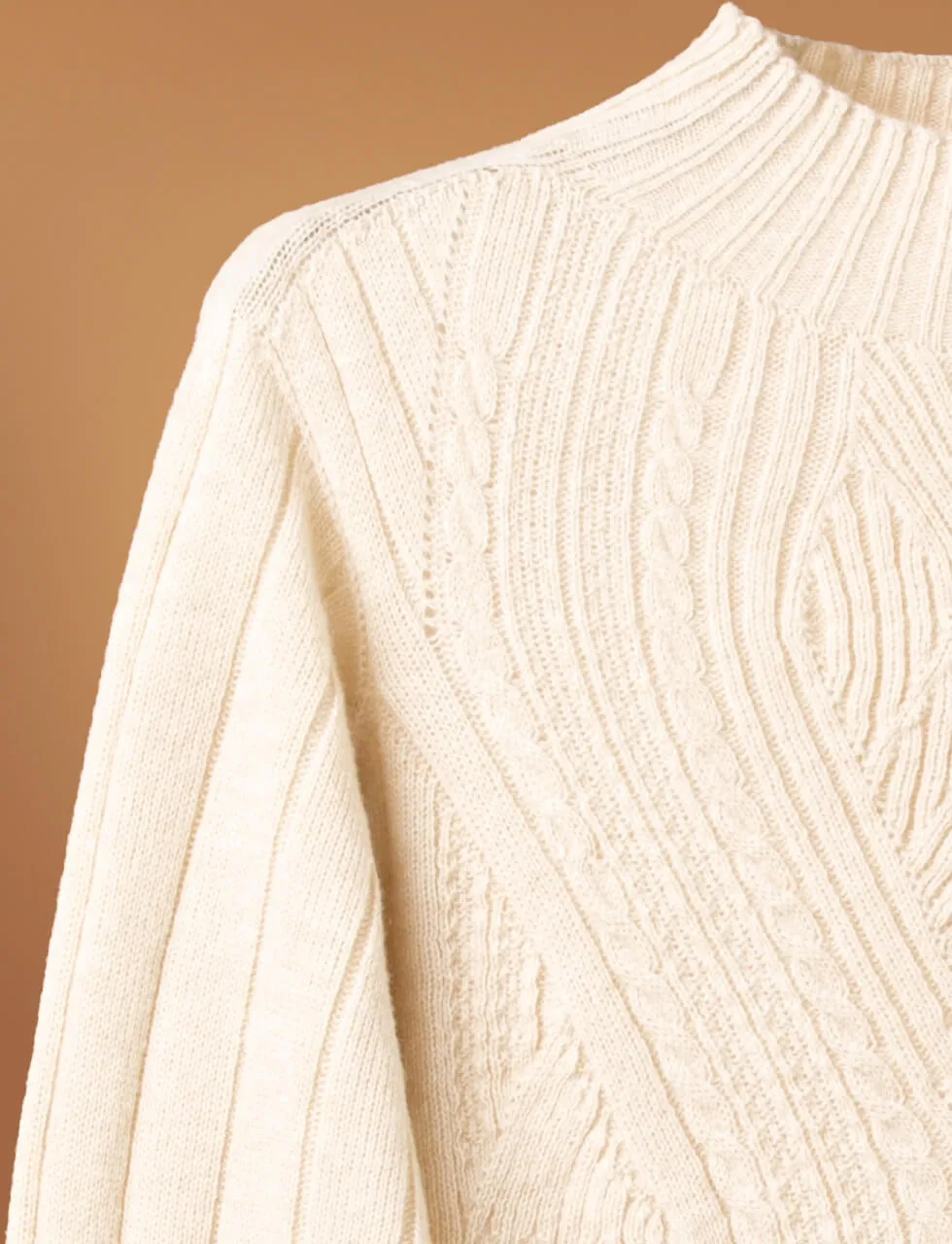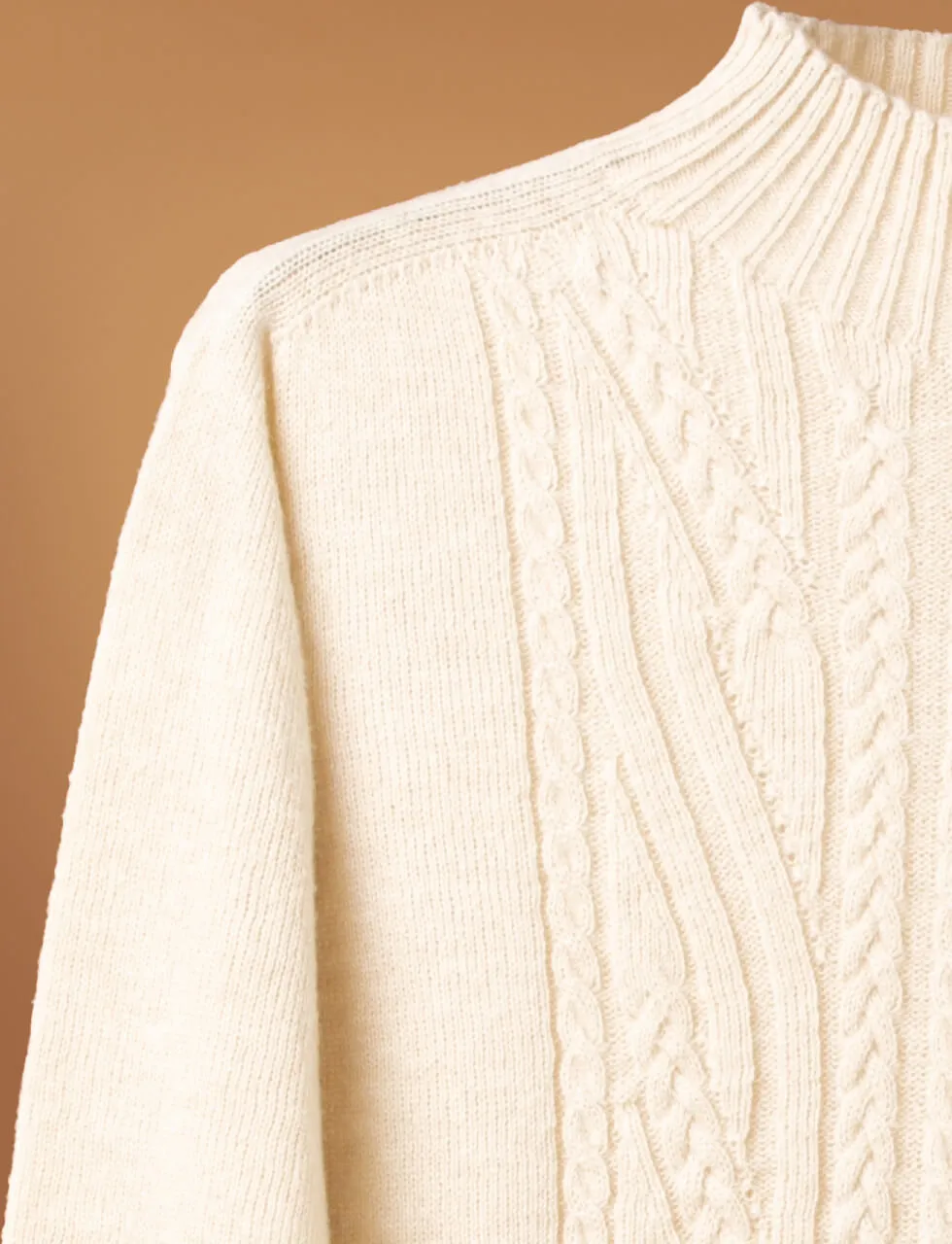 - 衿にボリューム感を持たせたケーブル柄のホールガーメントニット