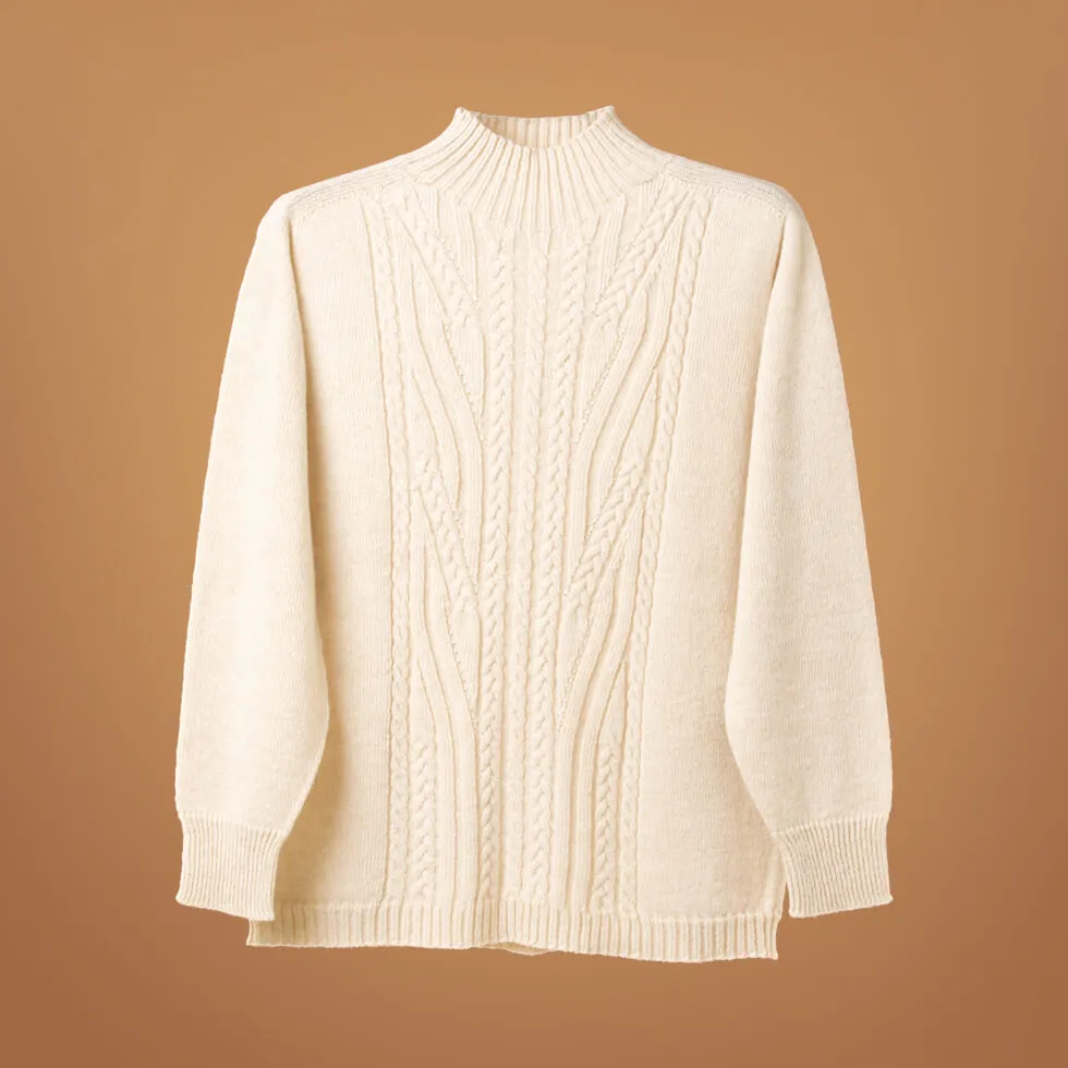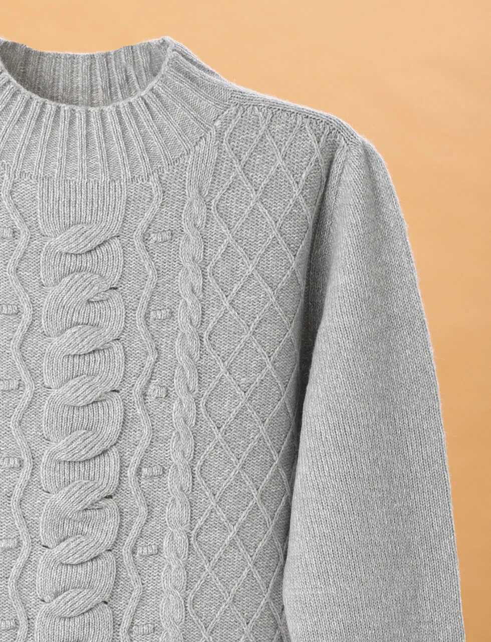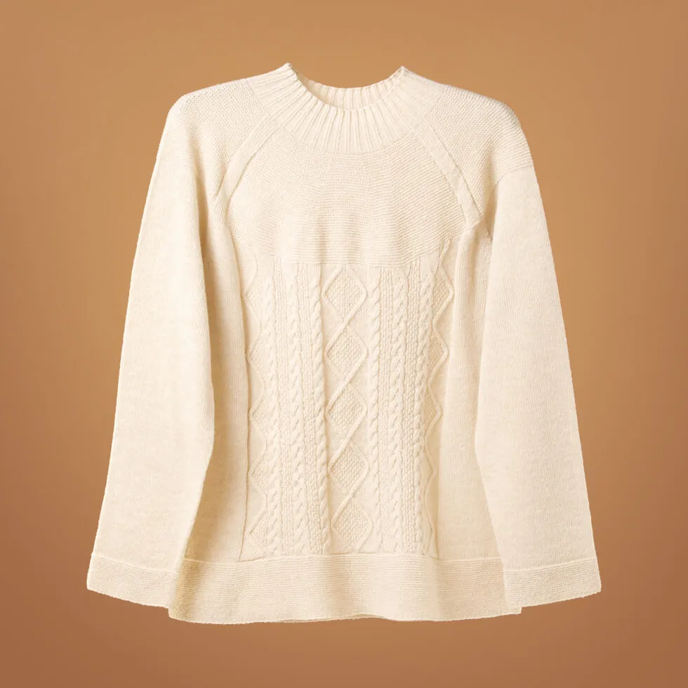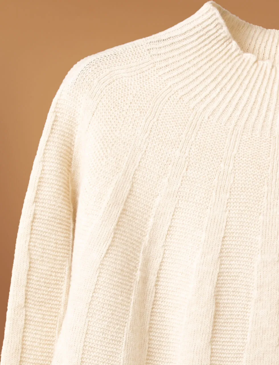 - 衿にボリューム感を持たせたケーブル柄のホールガーメントニット