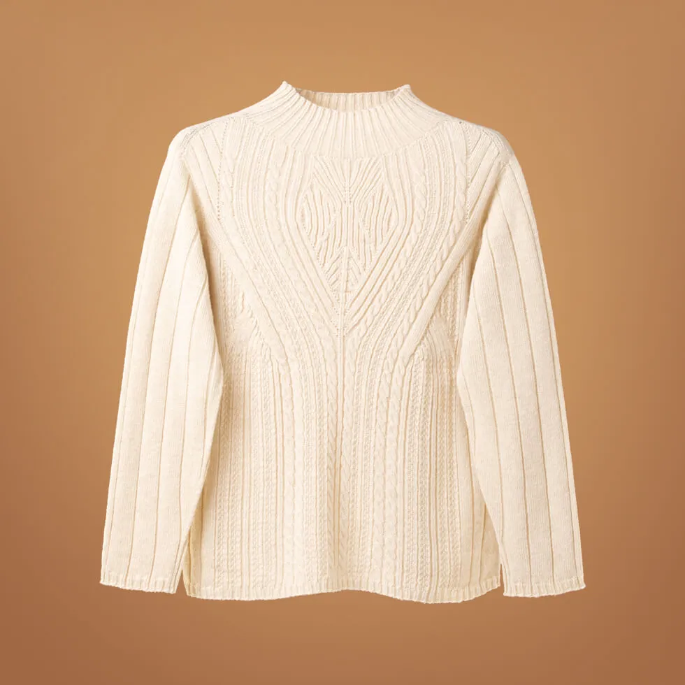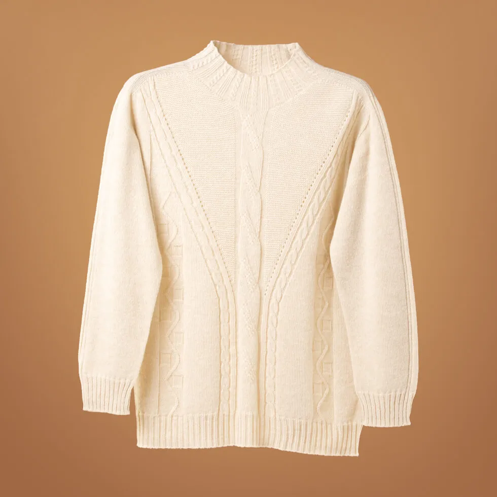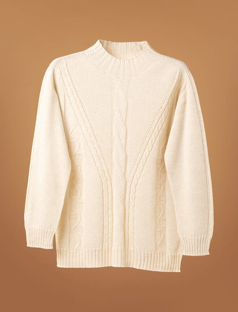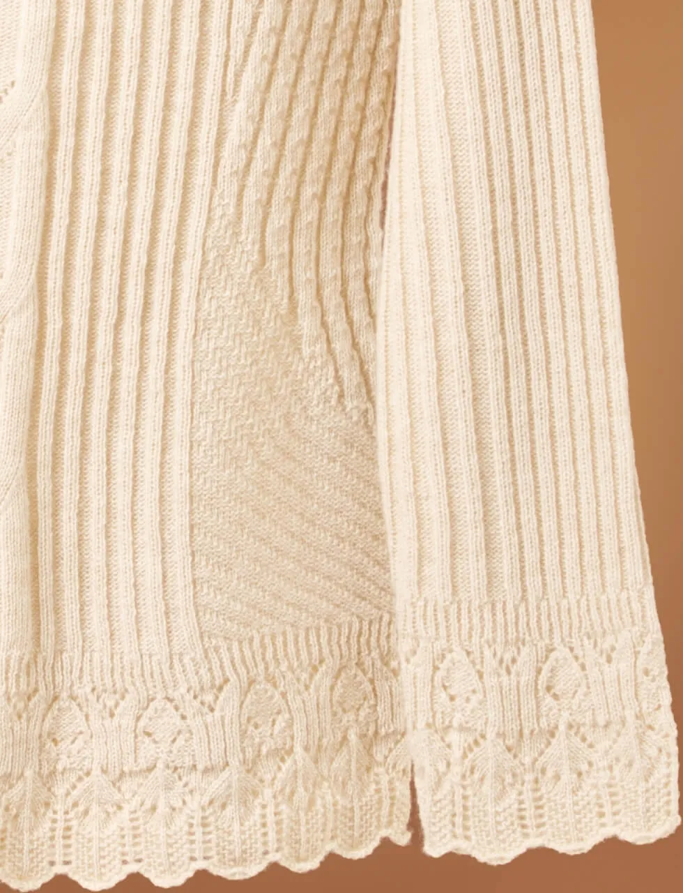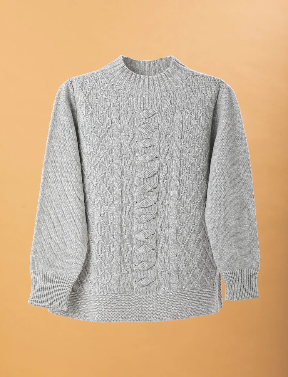 - 衿にボリューム感を持たせたケーブル柄のホールガーメントニット