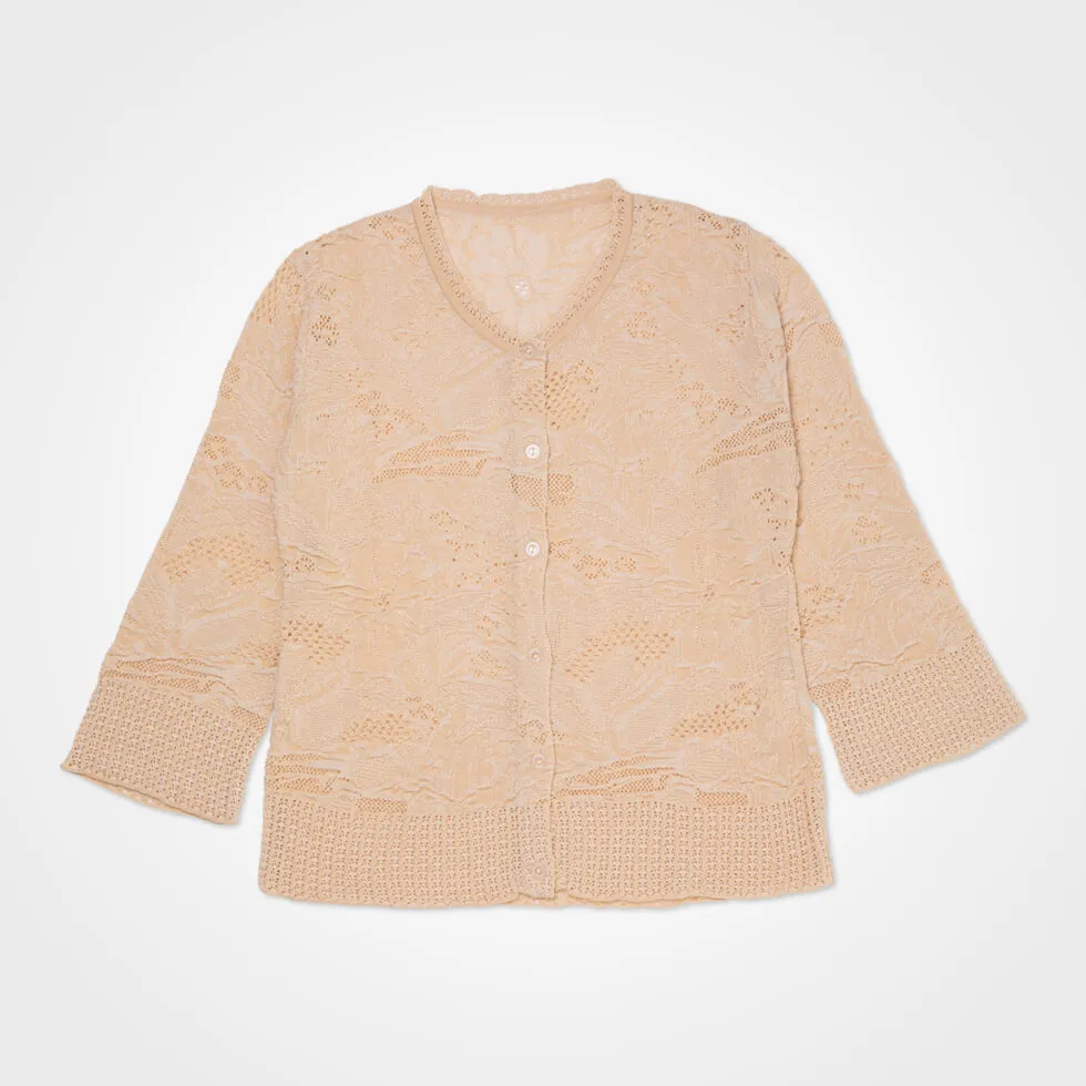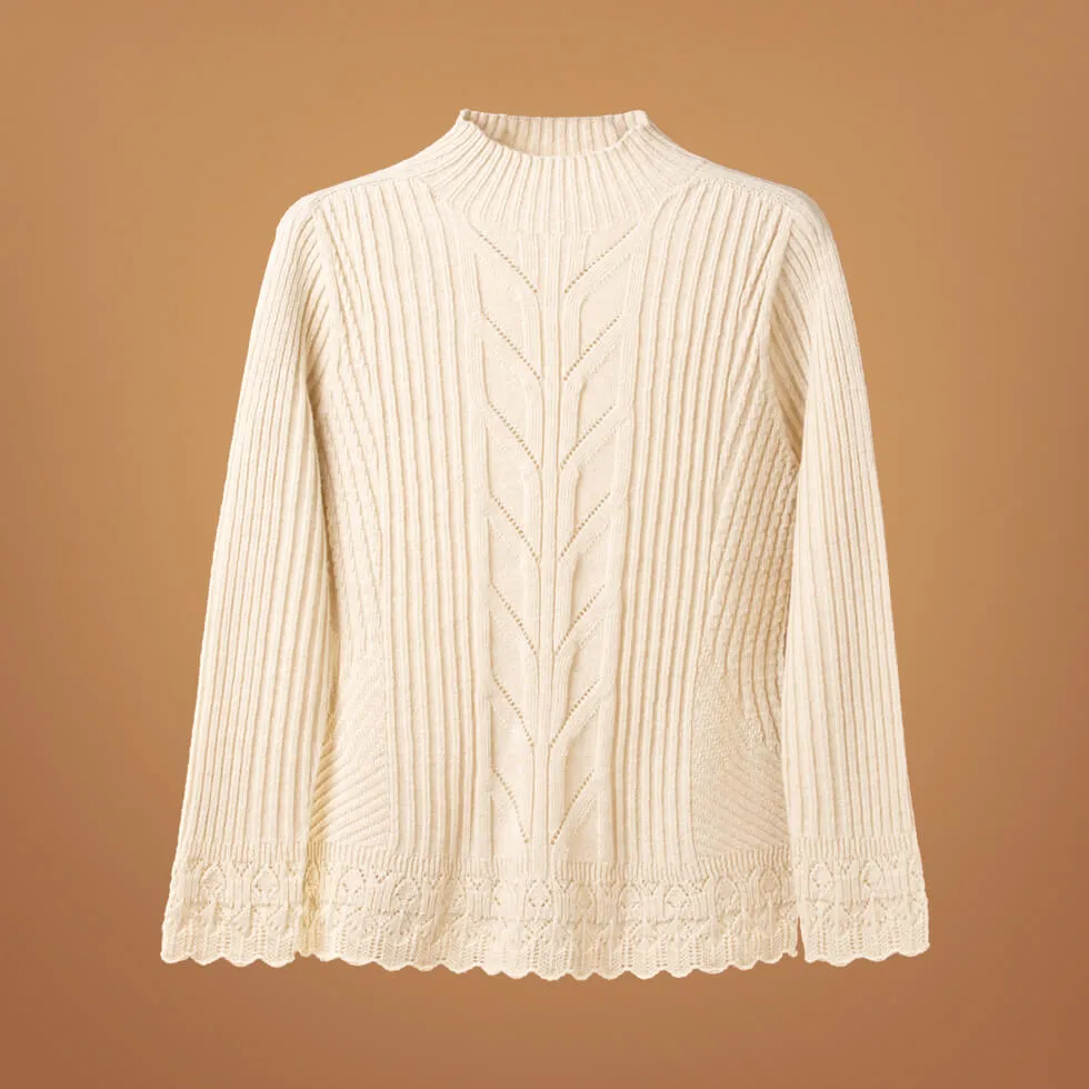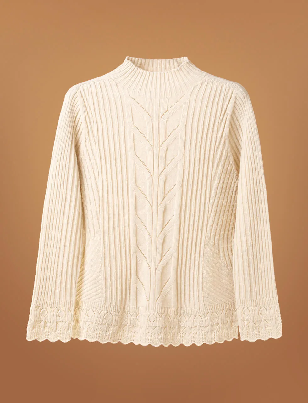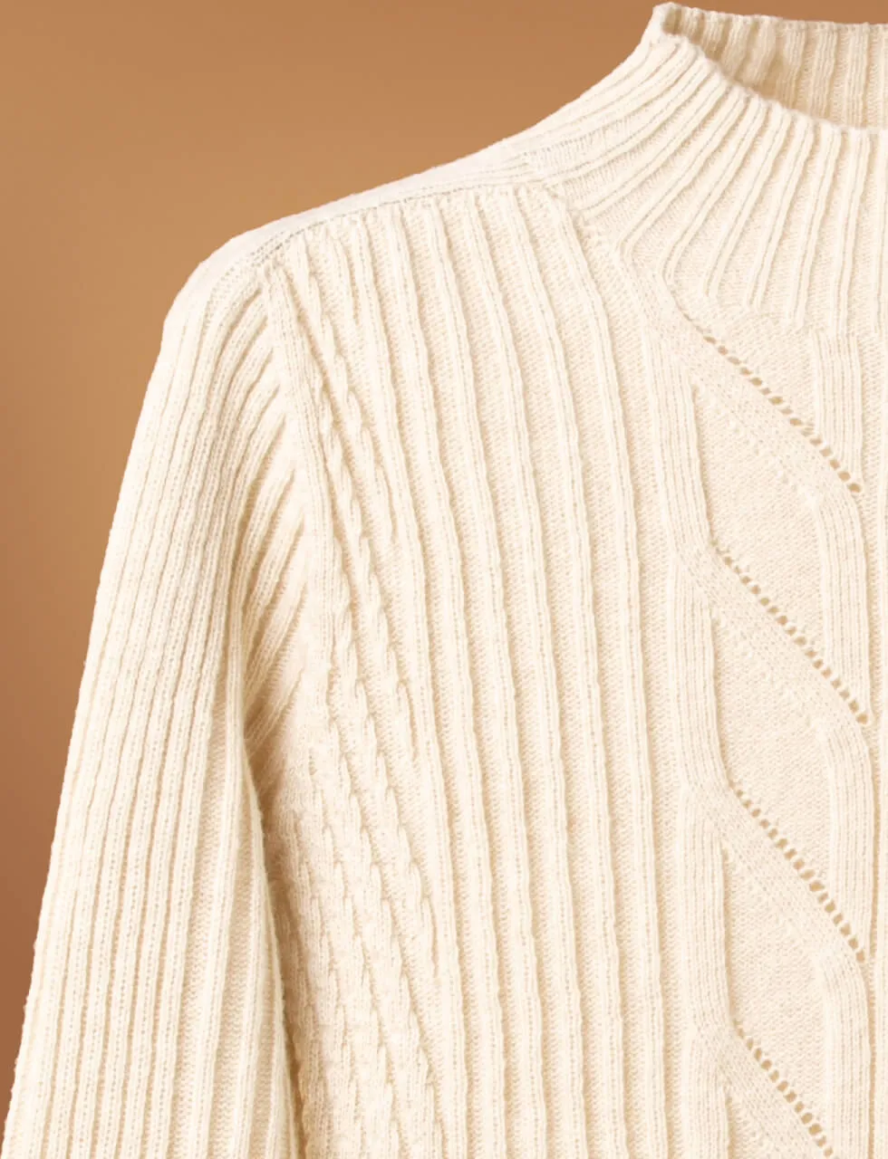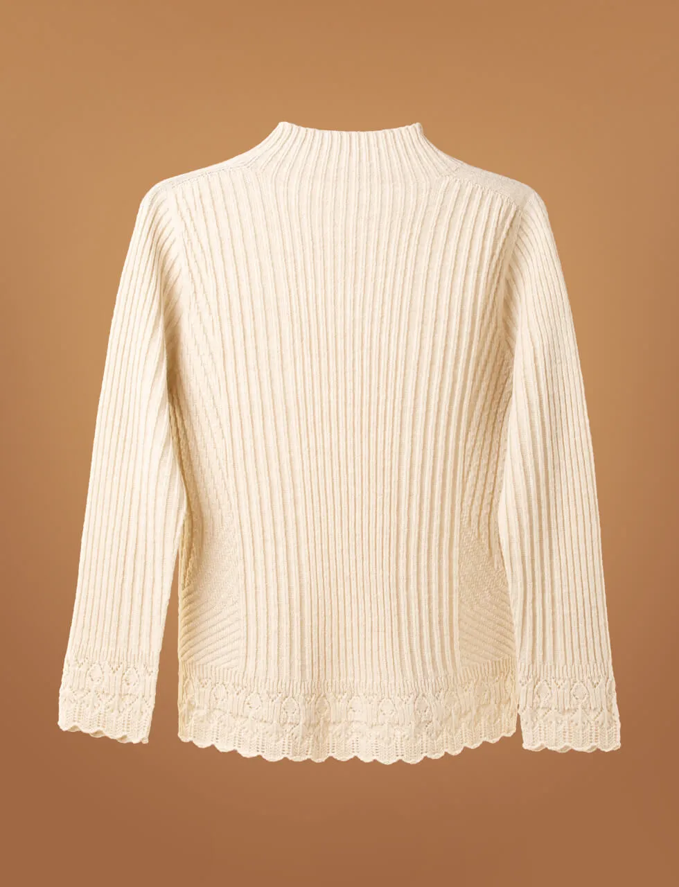 - 衿にボリューム感を持たせたケーブル柄のホールガーメントニット