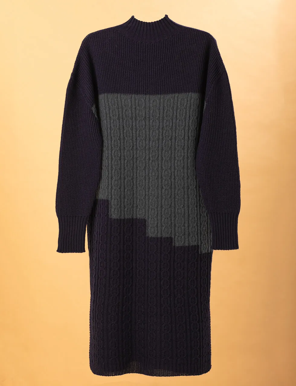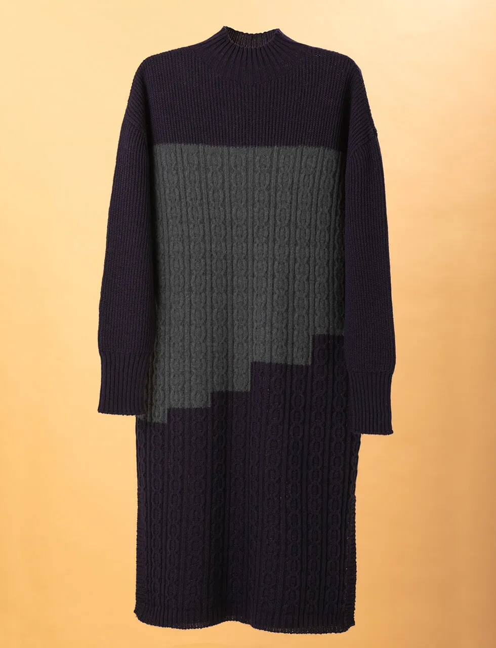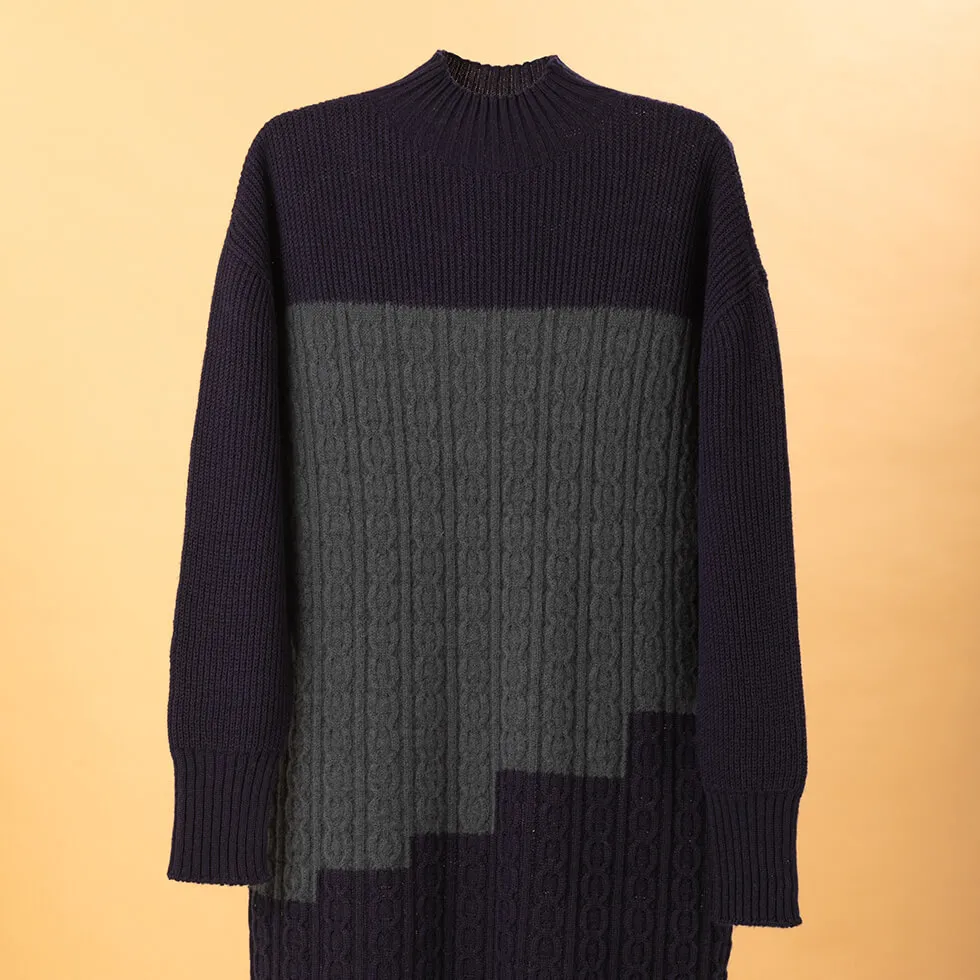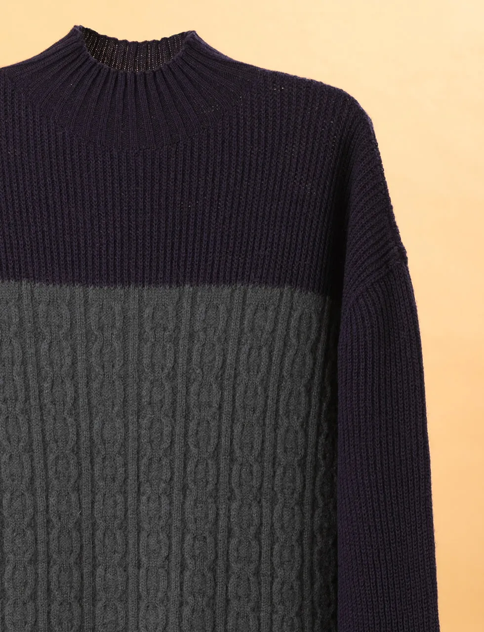 - ダイヤ柄とケーブル柄を重ね合わせたホールガーメントニット