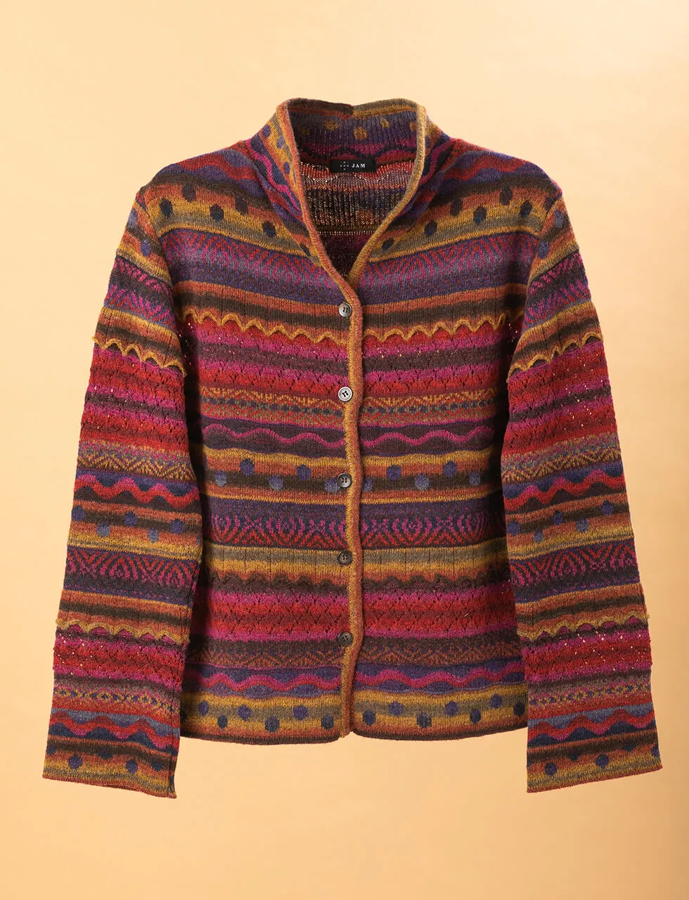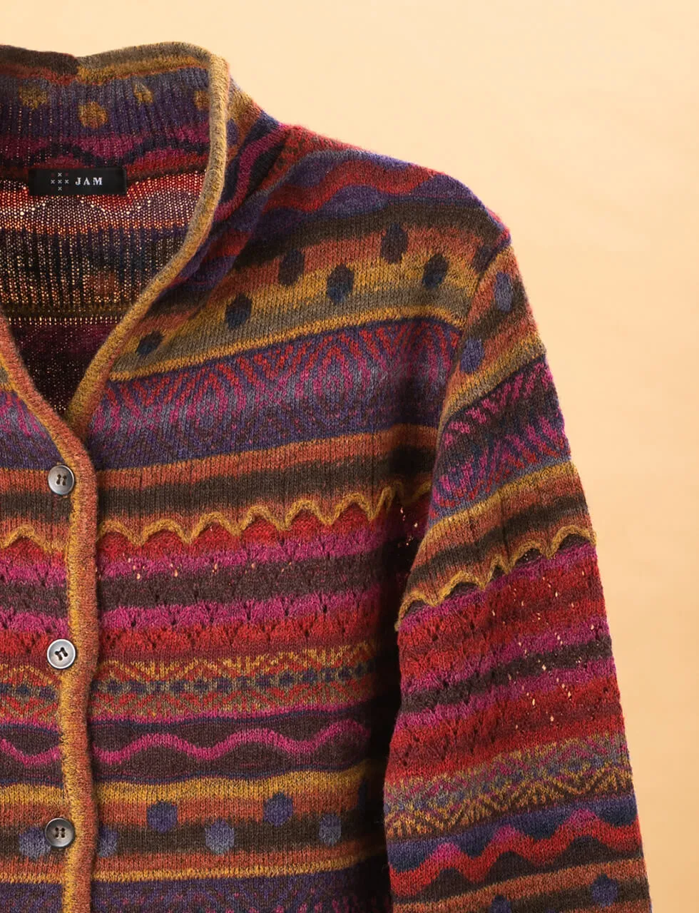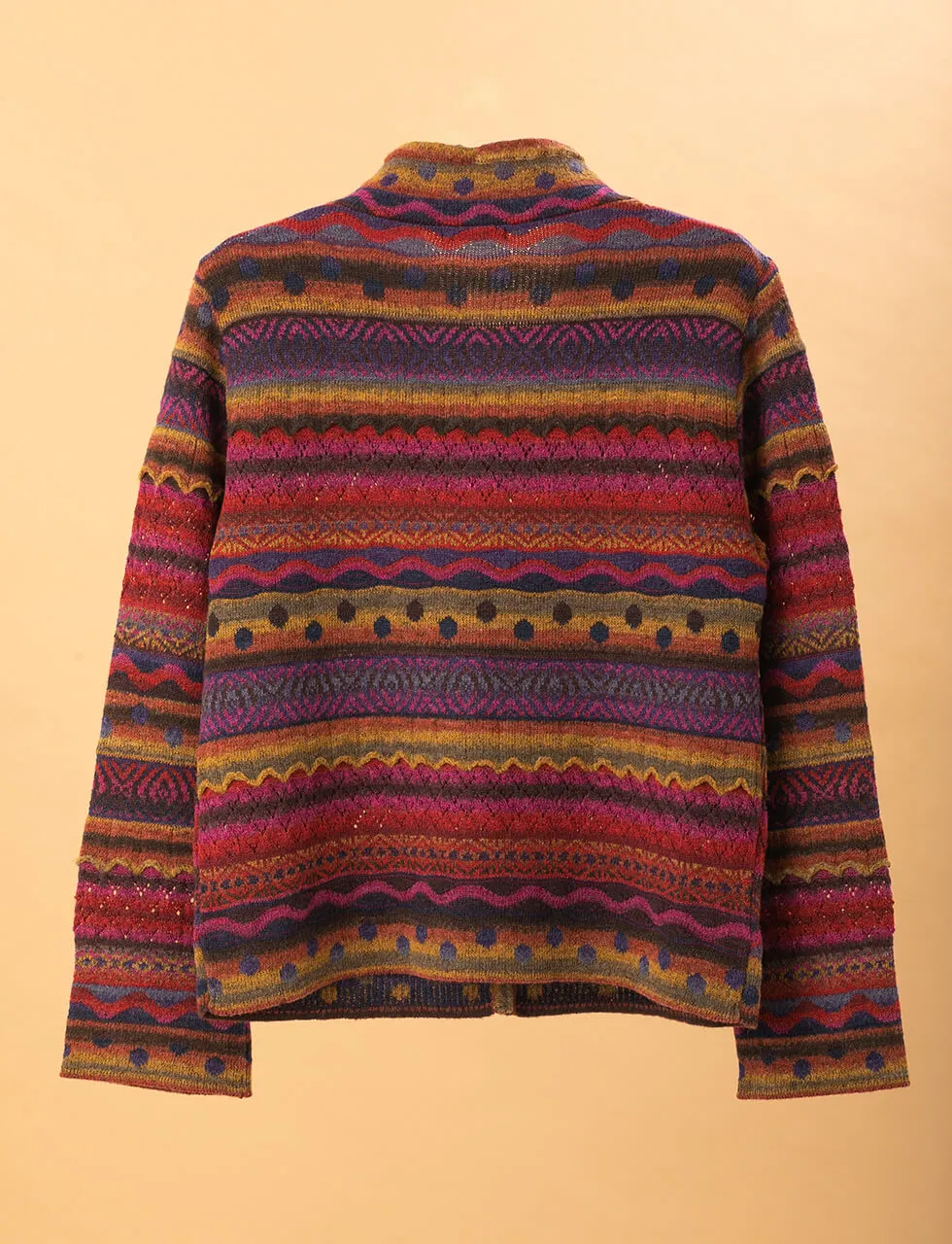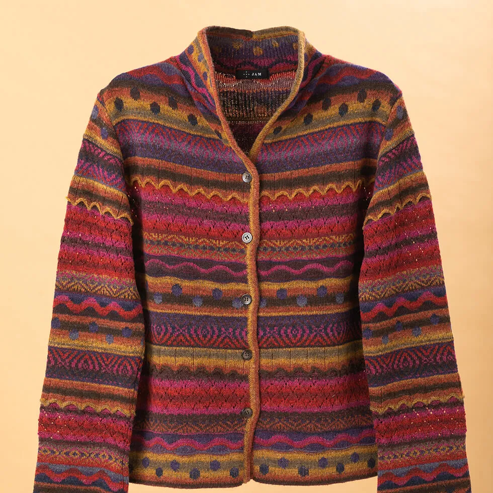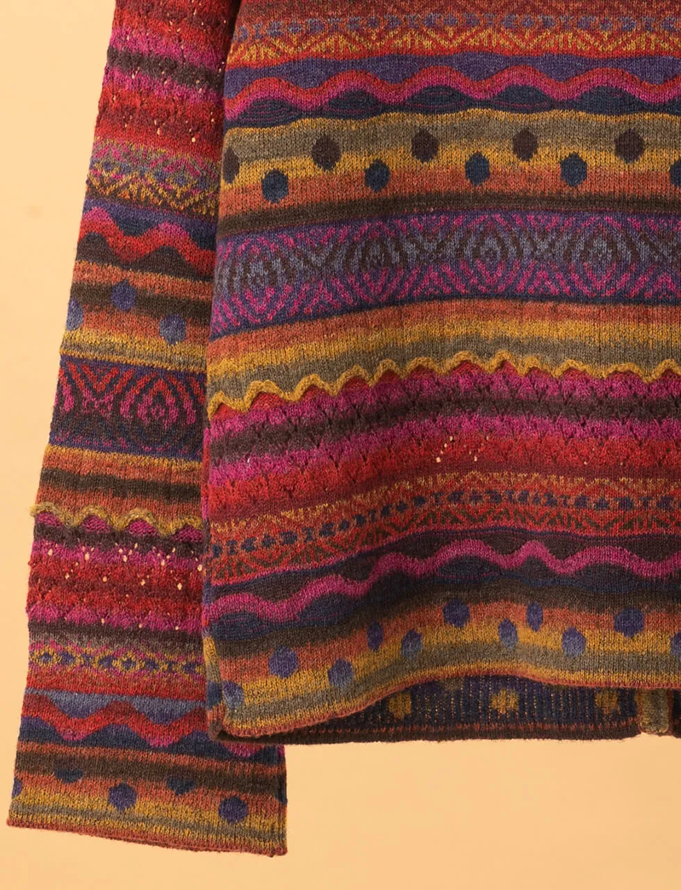 - 多色の絣糸を使用したカラフルなカーディガンです。