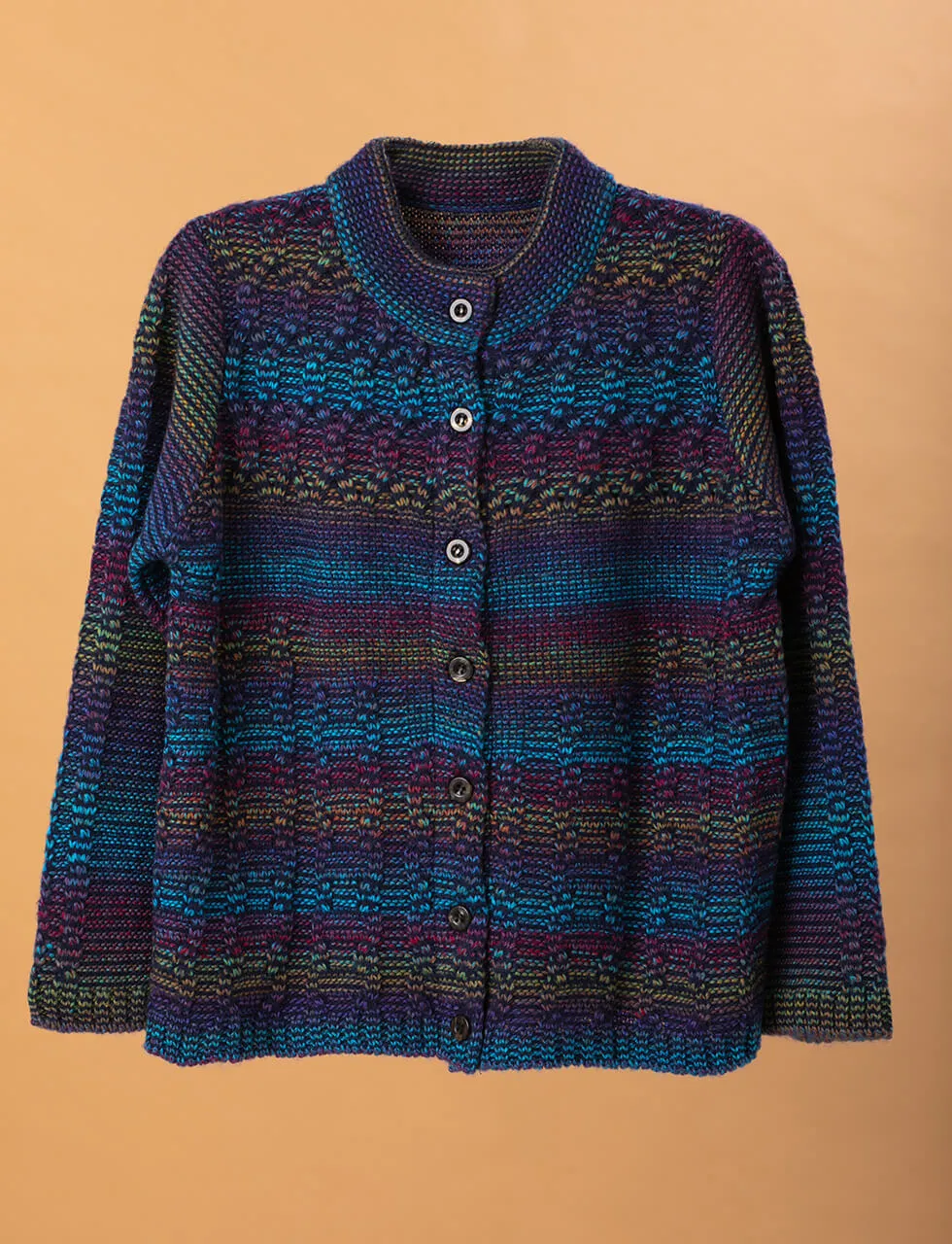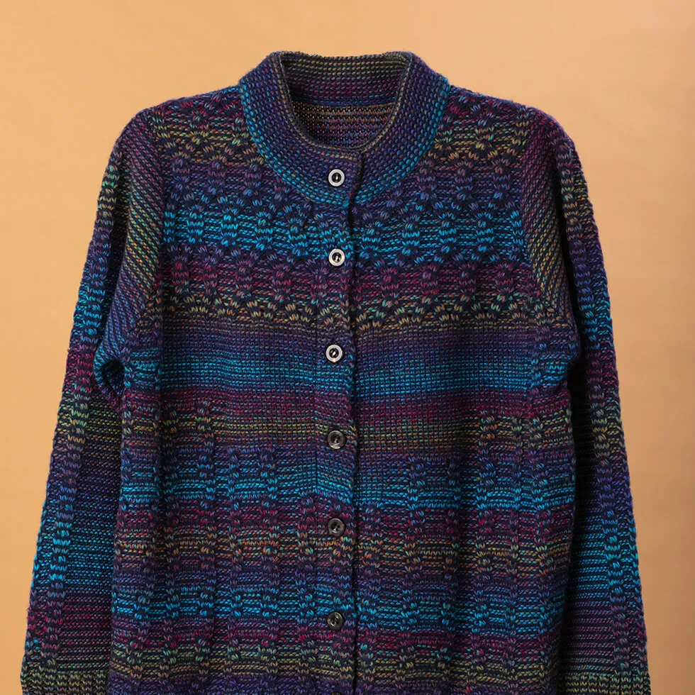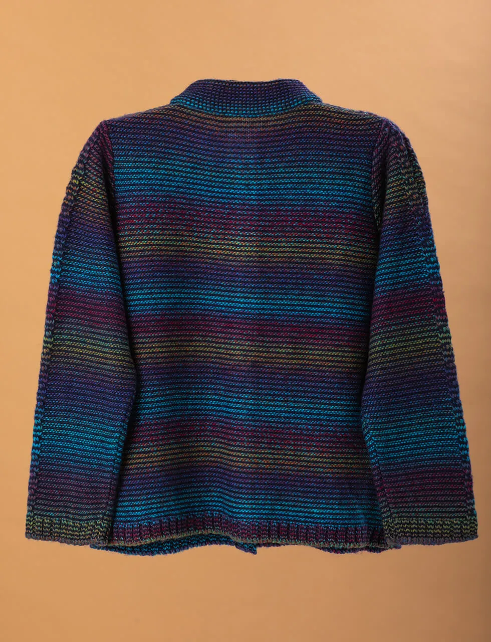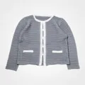 - 総ボーダーのスレッド。ニット特有の立体感のある商品です。飾りポケットと飾り釦をつけカジュアルでお出かけできるジャケットに仕上げました。