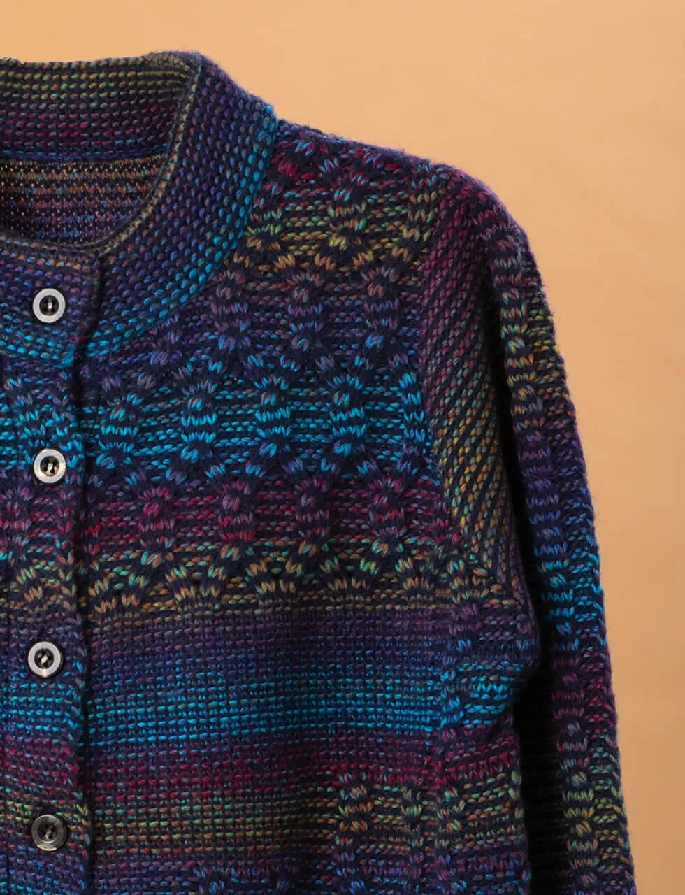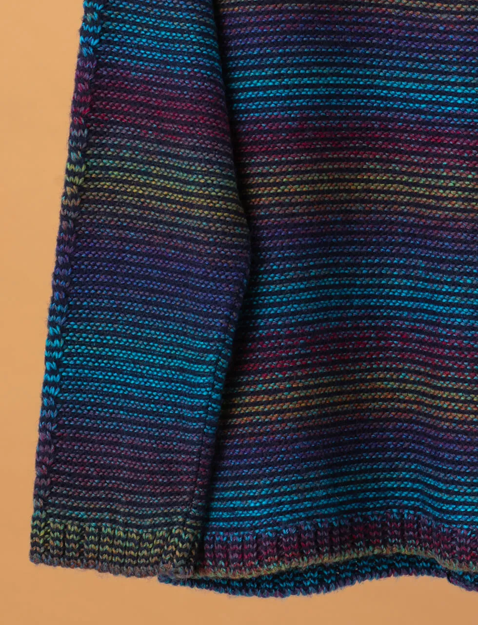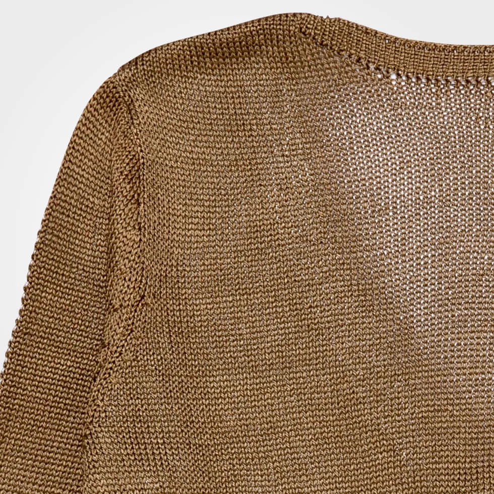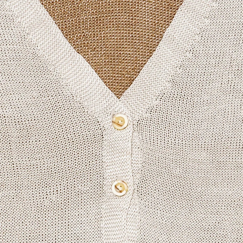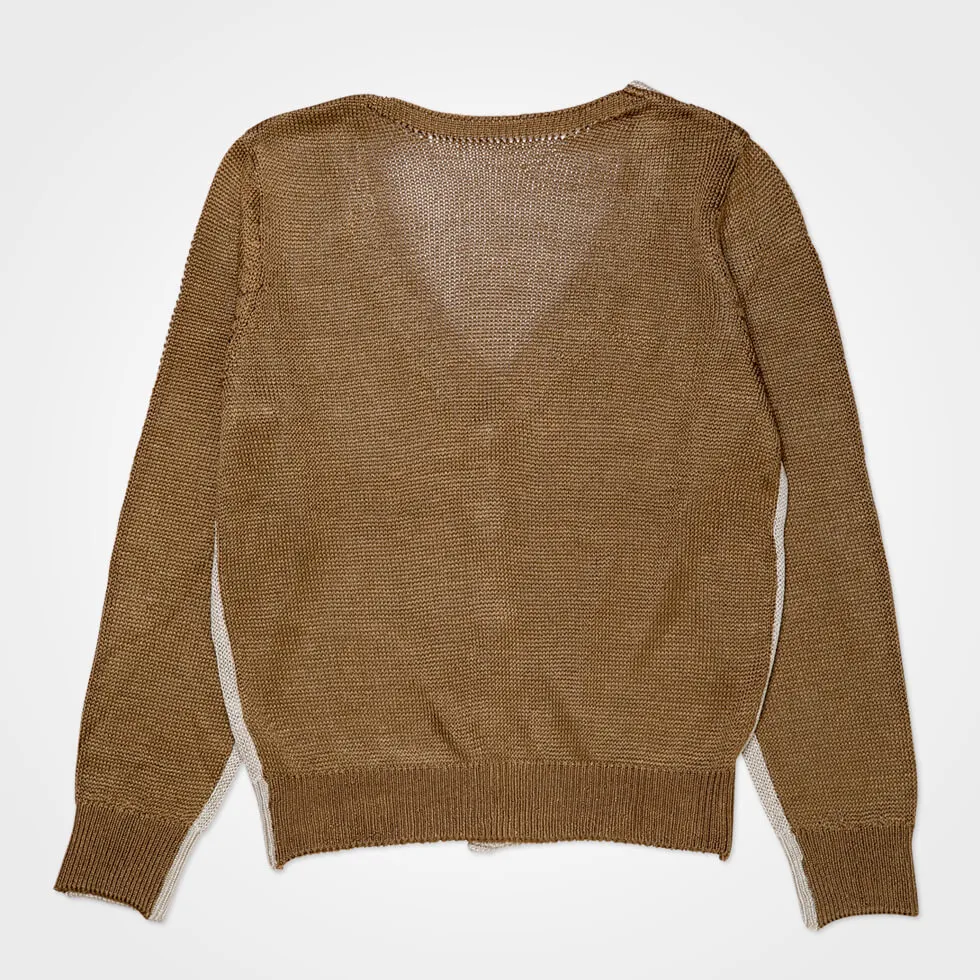 - シルク100%の光沢がきれいなVカーデ。前と後ろで配色を変えて少しカジュアルな感じに仕上げました。