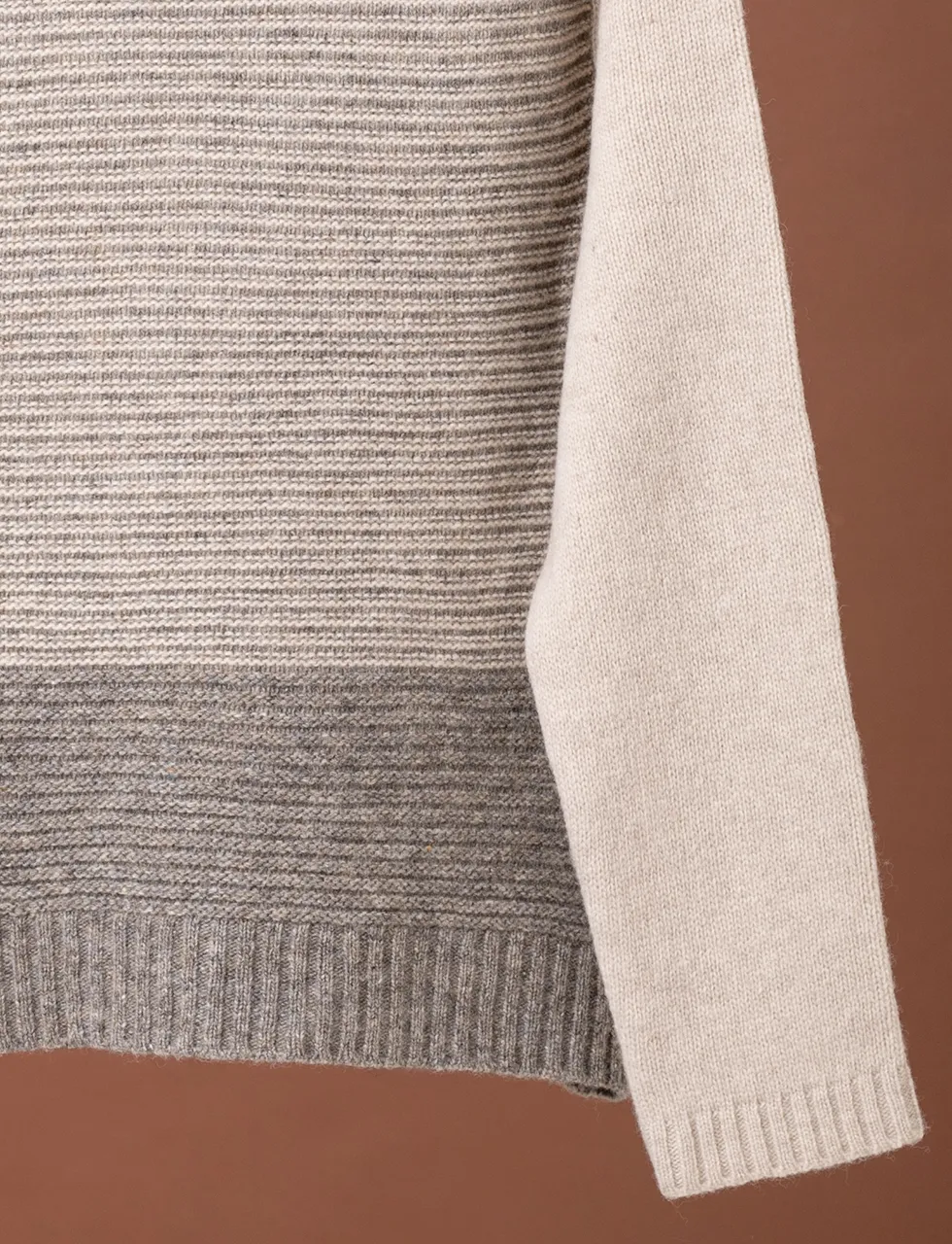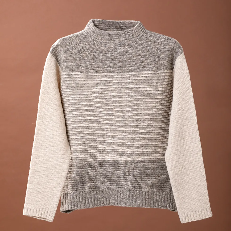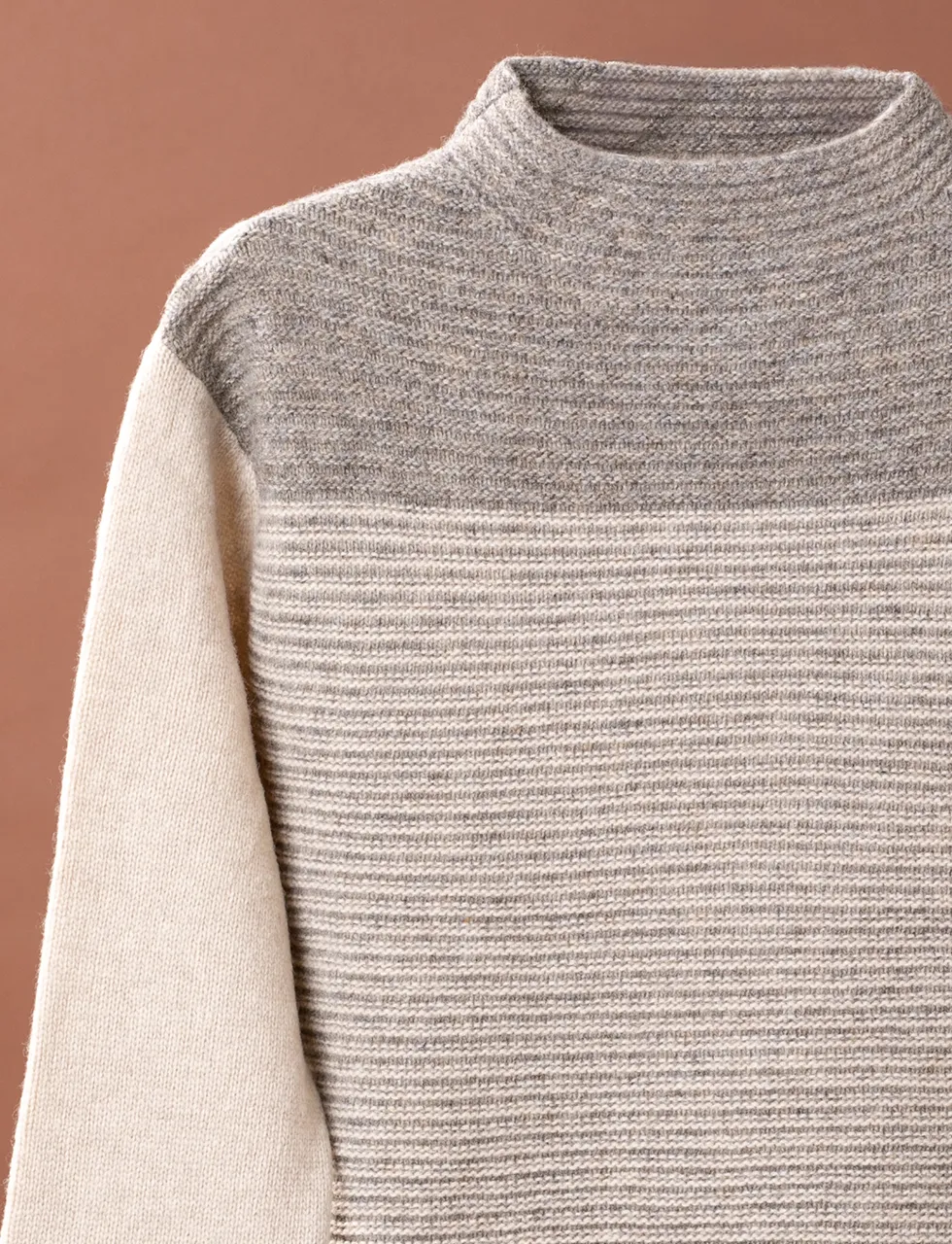 - いろいろな編地柄を組み合わせたボリューム感あるボトルネックプルオーバーです。