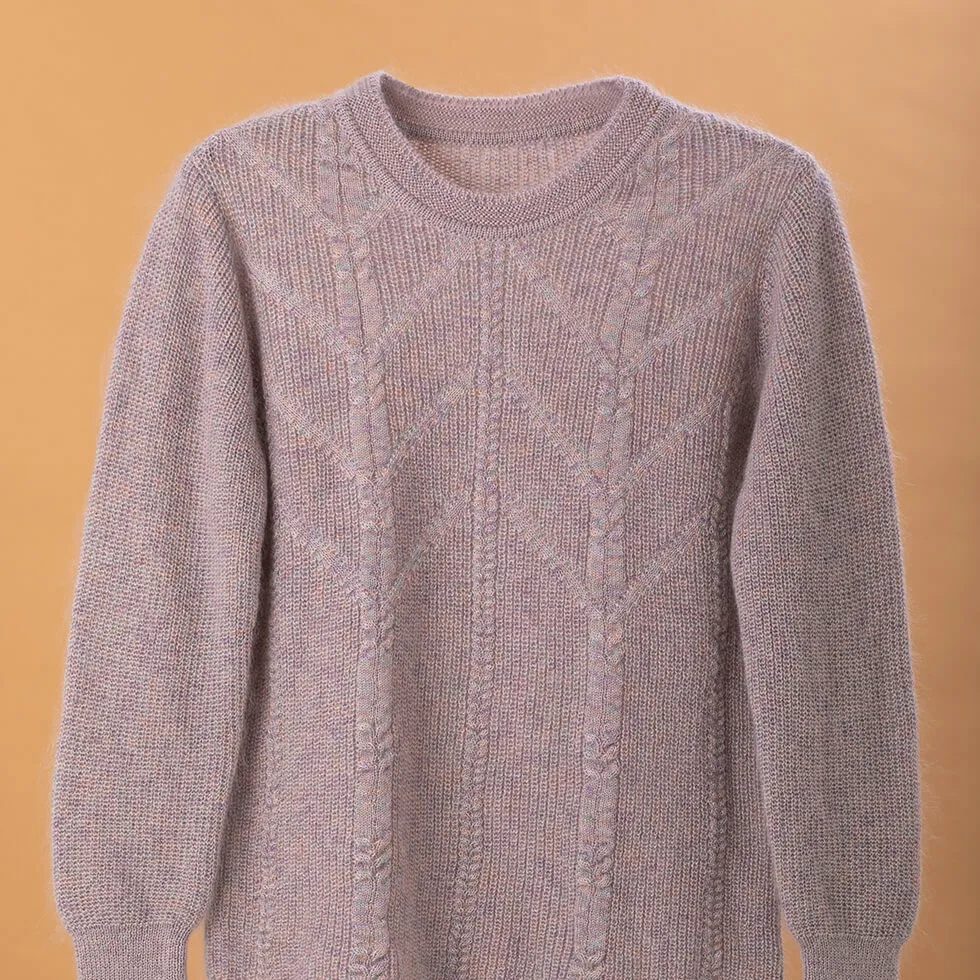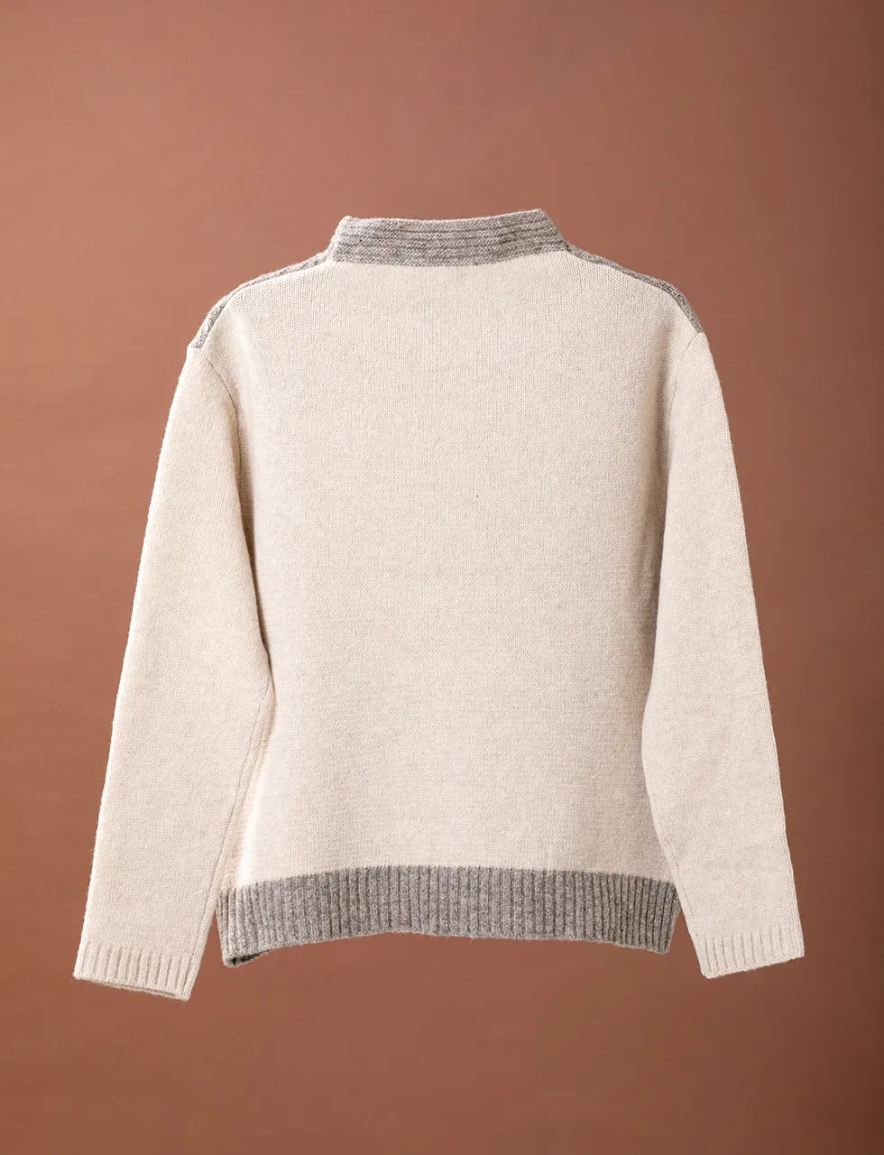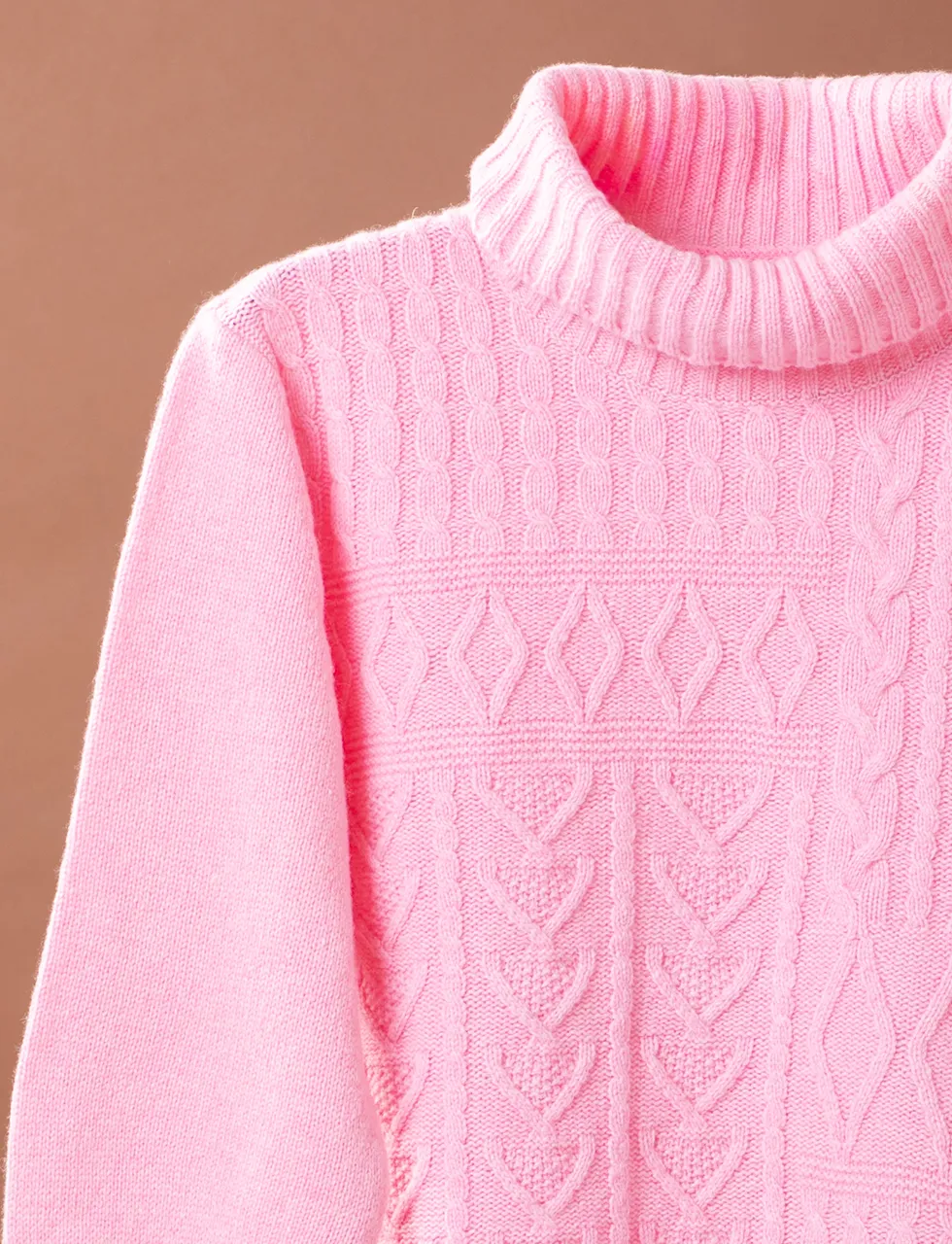 - いろいろな編地柄を組み合わせたボリューム感あるボトルネックプルオーバーです。