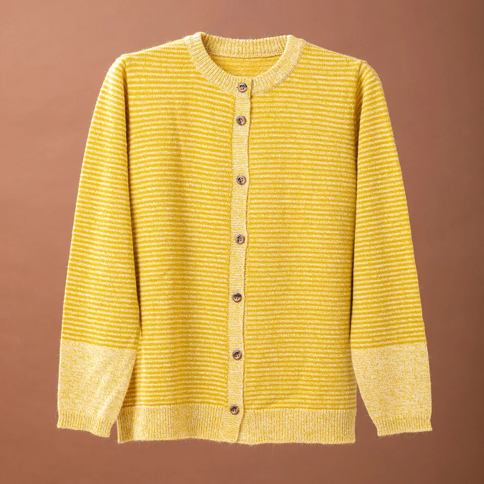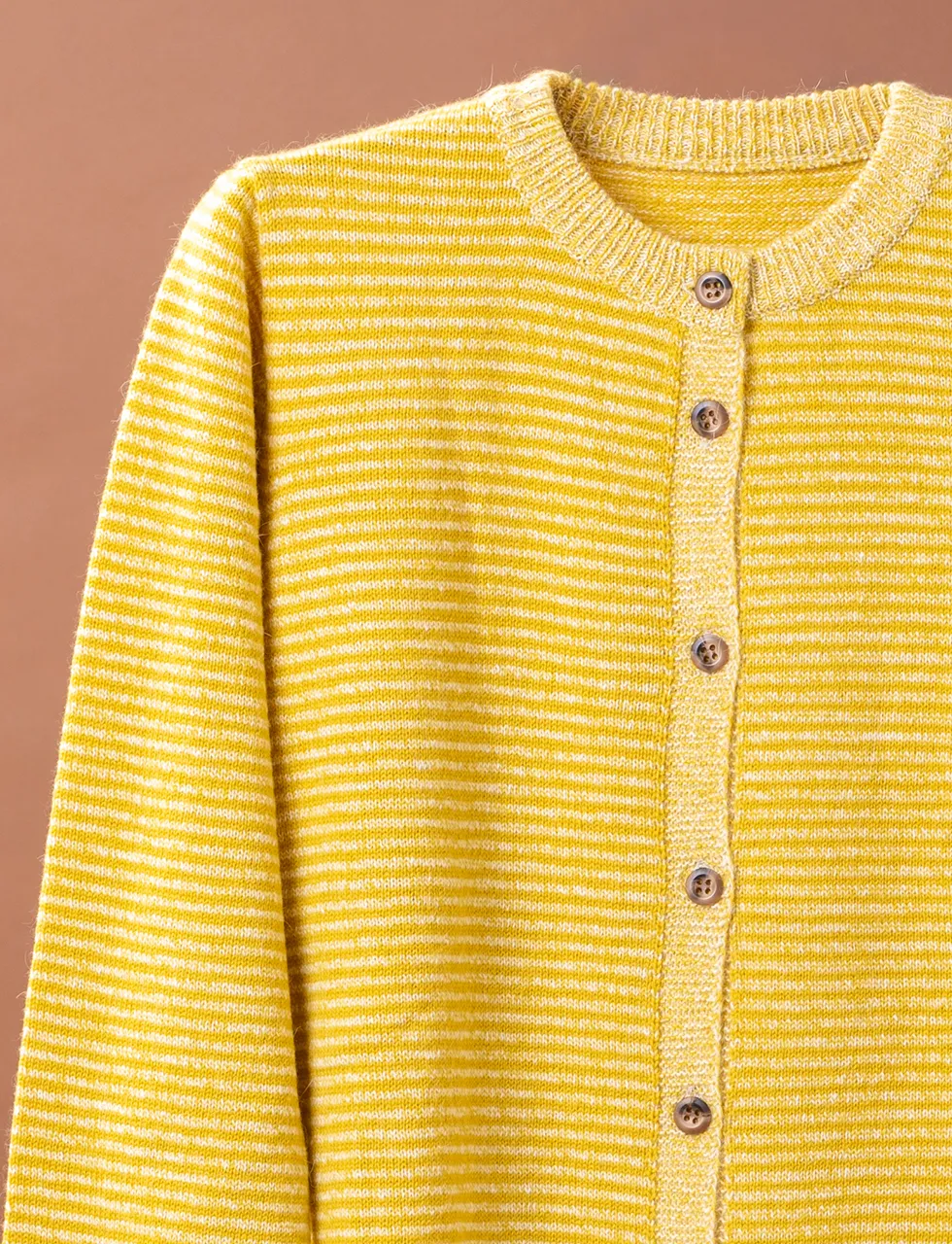 - レイヤードコーデにも使いやすく、愛らしい表情が印象的な釦付きカーディガンです。